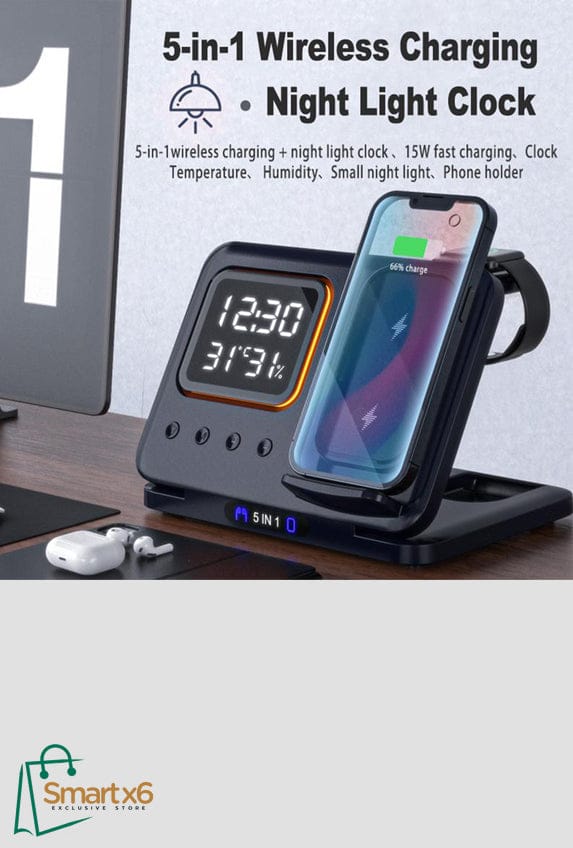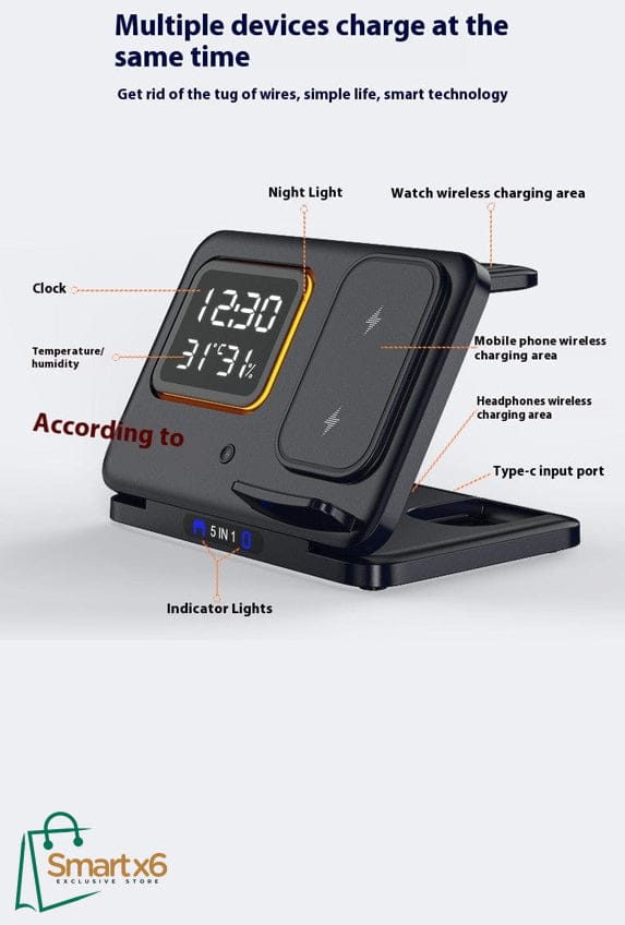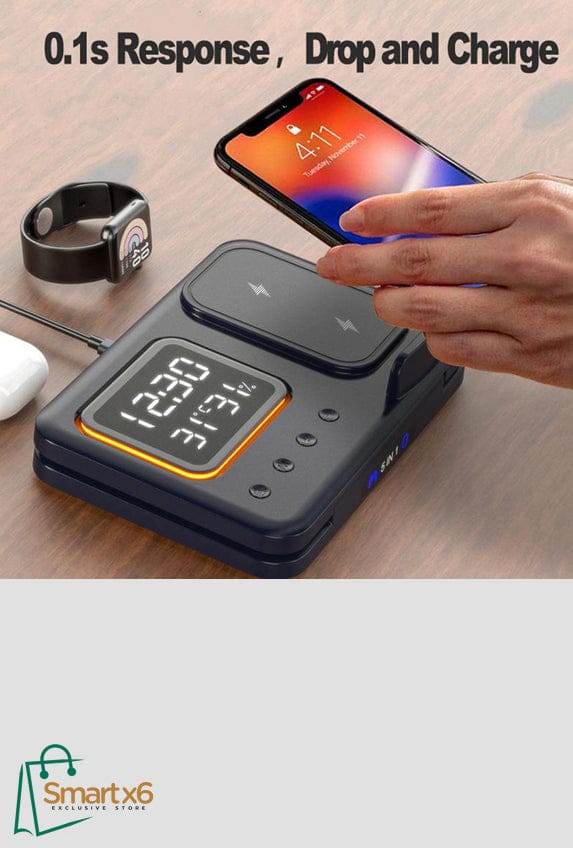 1. Multi-Device Wireless Charging: Simultaneously support fast charging of multiple devices, including phones, watches, and headphones, while keeping track of time, temperature, and humidity with this multi-functional Wireless Charging Station. Perfect for those with busy lifefashions and numerous electronics to charge.